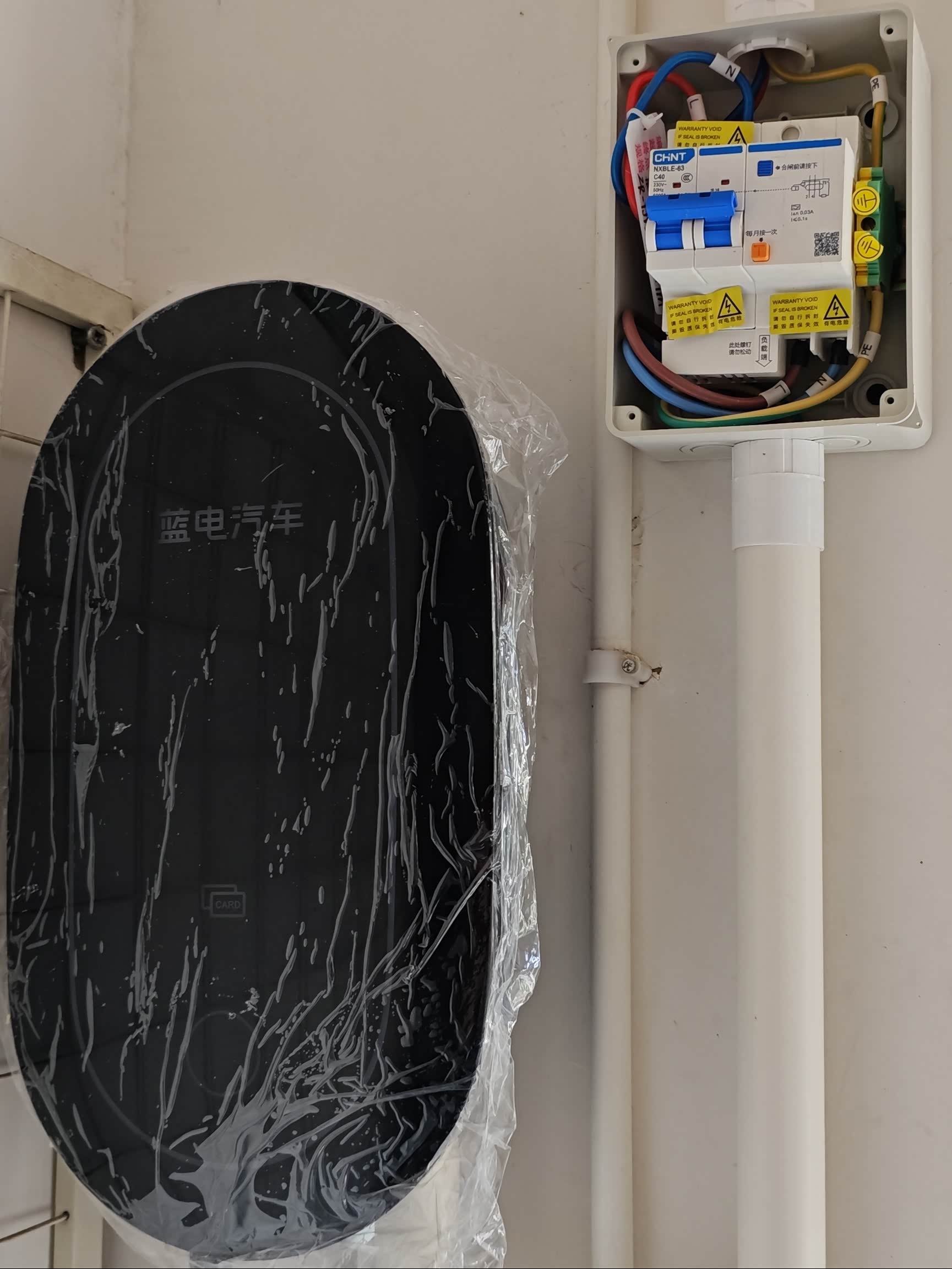 小区房原本电闸处就有预留地线。所以也不用单独花钱打地针。唯一的一堵墙原本就有预留线槽,所以也不需要花钱打洞,自己还准备了空开和漏保,结果人家本身就带漏保,只用上了63的空开。