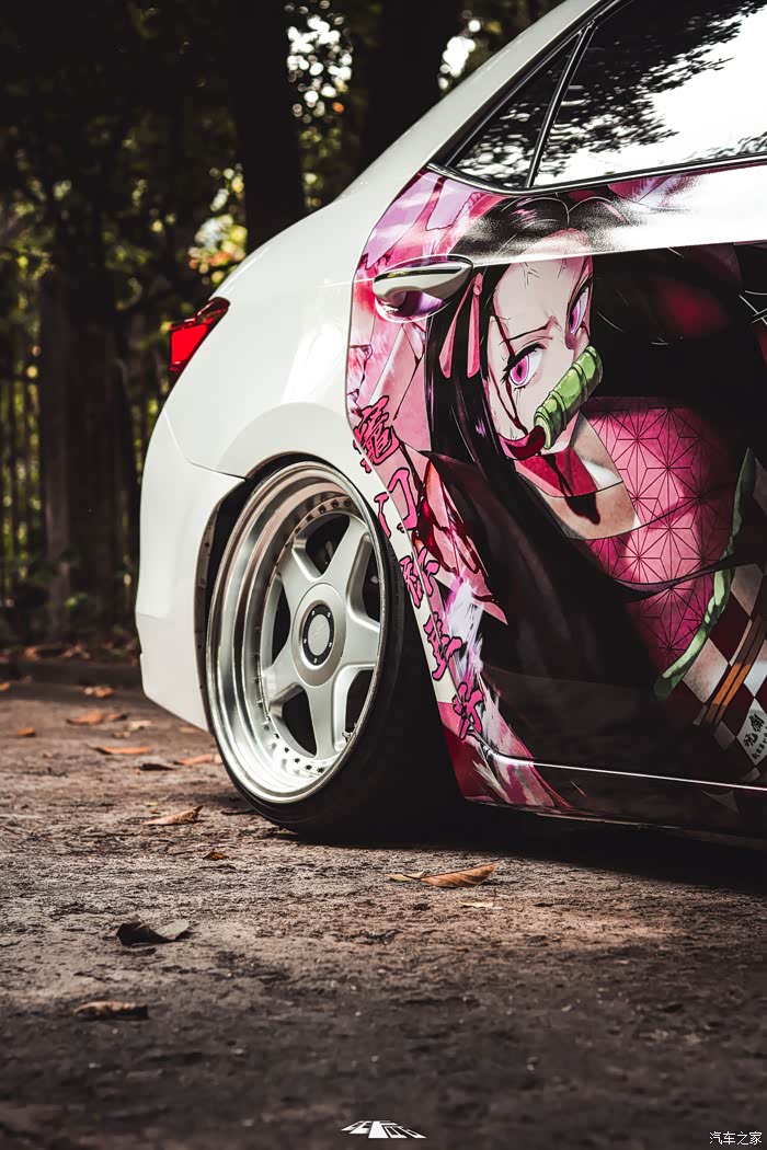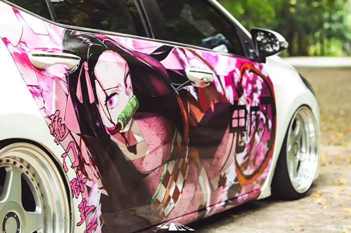 第一次更换车贴,车主选择了当时时下大热的番剧《鬼灭之刃》中的主角灶门祢豆子作为痛车的题材。
