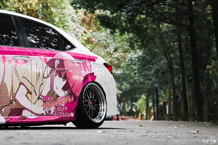 来到痛车方面,前文提到车主是一位老二次元了,第一次痛车当然选择自己最喜爱的番剧作为痛车主题。