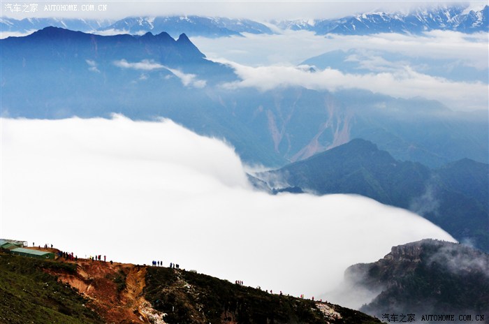 观景的人们,在山脊上排成了一条线,这美景,怎么能不让人流连?