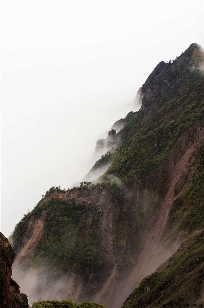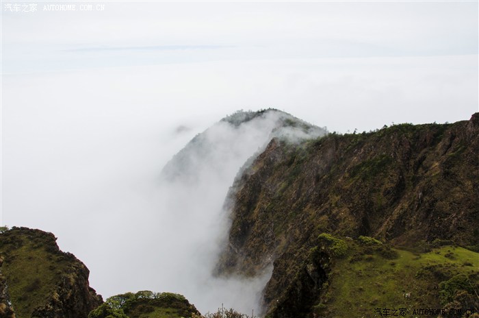 洁白的雾气,沿着山顶倾泻二下,形成非常壮美的云瀑。