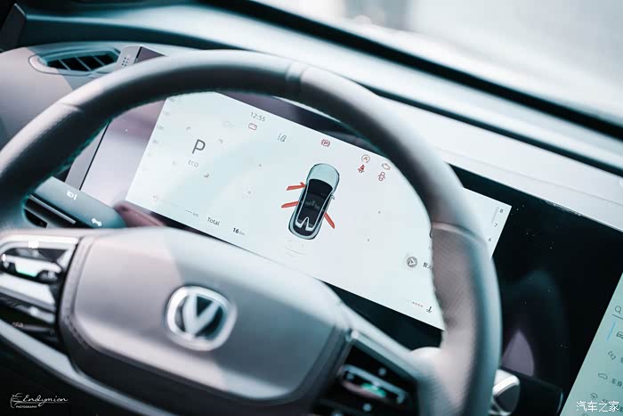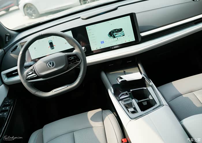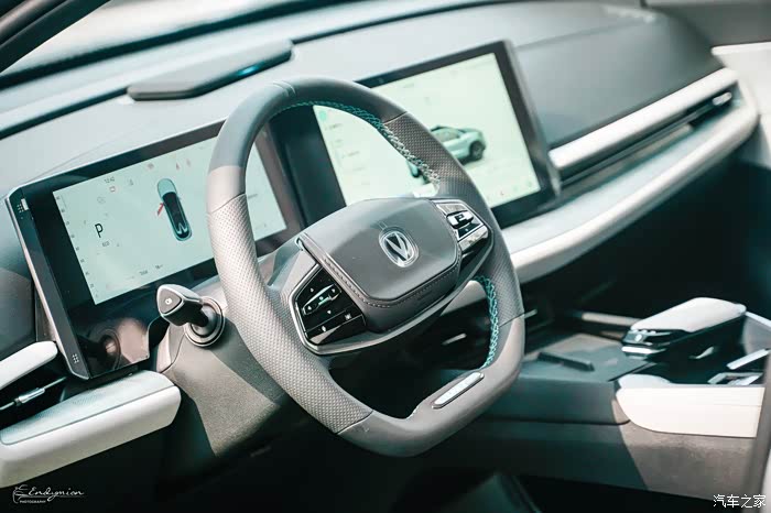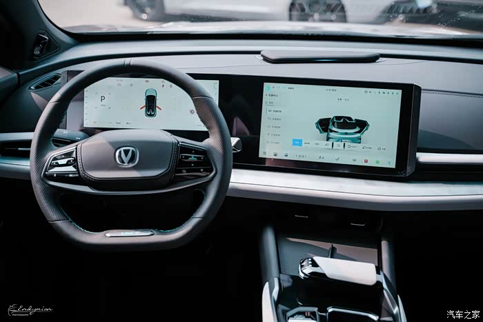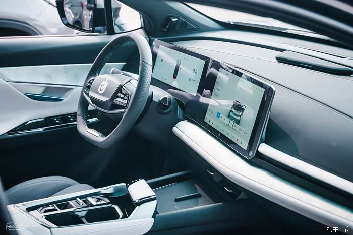此次升级的重点,新车换装了两个更大尺寸的悬浮式双联屏,12.3寸+12.8寸的尺寸可以让一切一目了然。方向盘也采用了全新的样式,两辐式设计,按键升级为触摸式。