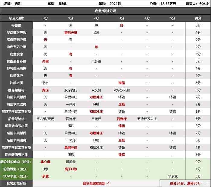 2021款吉利星越L底盘评分