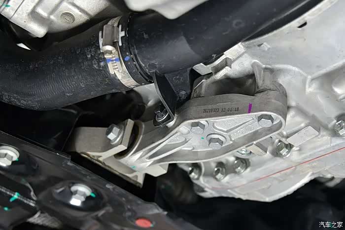 发动机和变速箱下方都有支撑点固定,四点悬置是典型的CMA车型设计。