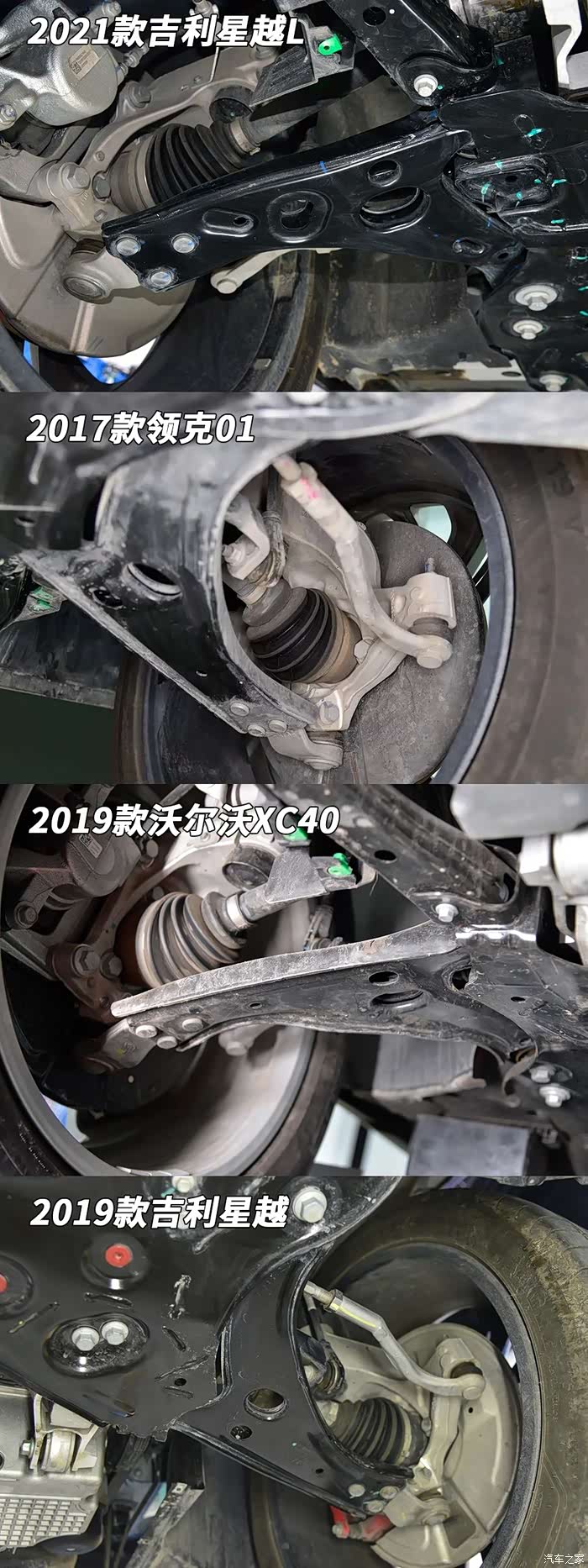 后悬结构和星越、领克01、沃尔沃XC40等CMA车型一模一样。