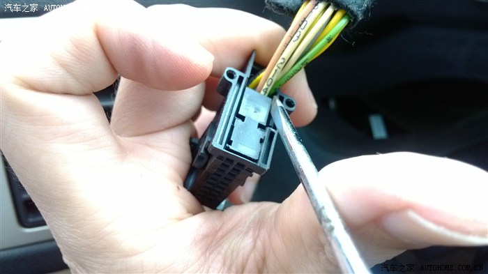 拔动卡扣,线束头就弹出来,拔出的线束头,要用到4和17号孔,按要求插入线。