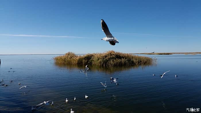 清晨,只为居延海那喷薄而出的一抹阳光,海鸟的自由飞翔,芦苇的一片片迎风弯腰,河水