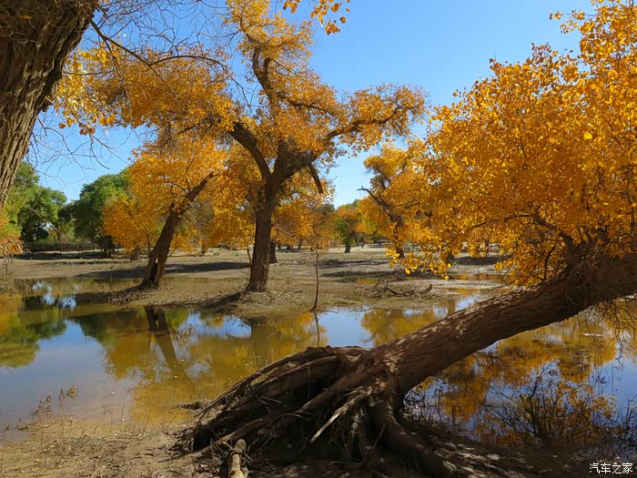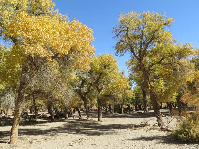 辉映,成就了中国最美秋色,一年一轮回,惊艳世人。胡杨林共有八道桥,而我们只观赏