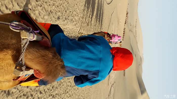 下滑一步,好不容易爬上了沙山,一边喘息一边欣赏大漠夕阳红。在这里,我们骑骆驼、滑沙,5