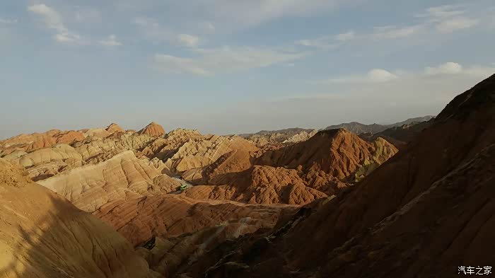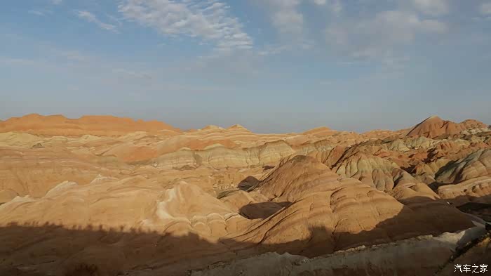 和彩色景区。丹霞的山要在阳光下才显得褶褶生辉,发出耀眼的金光,展现出不同层次的色彩