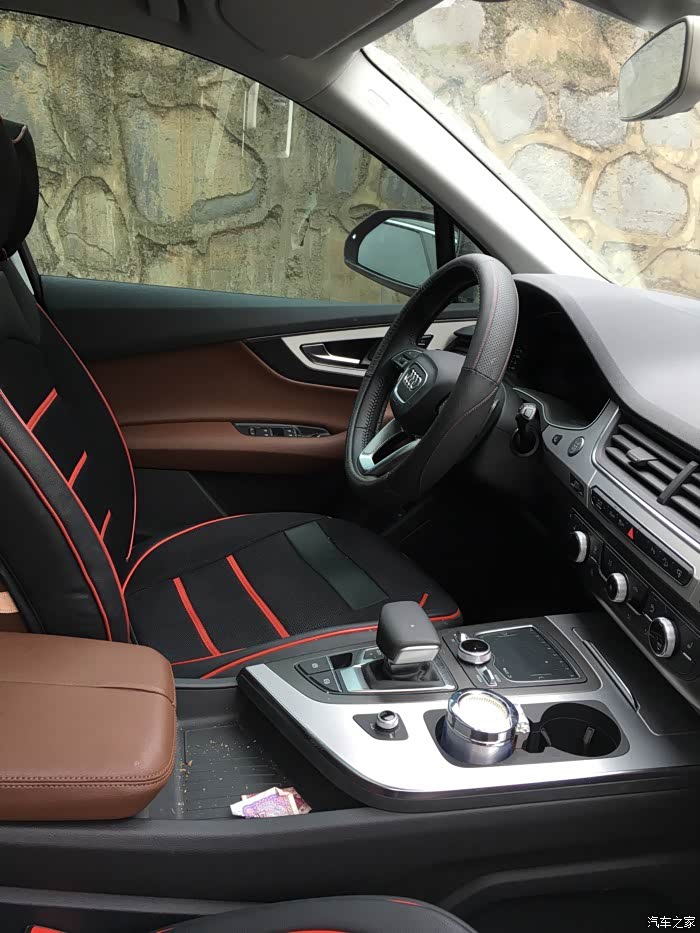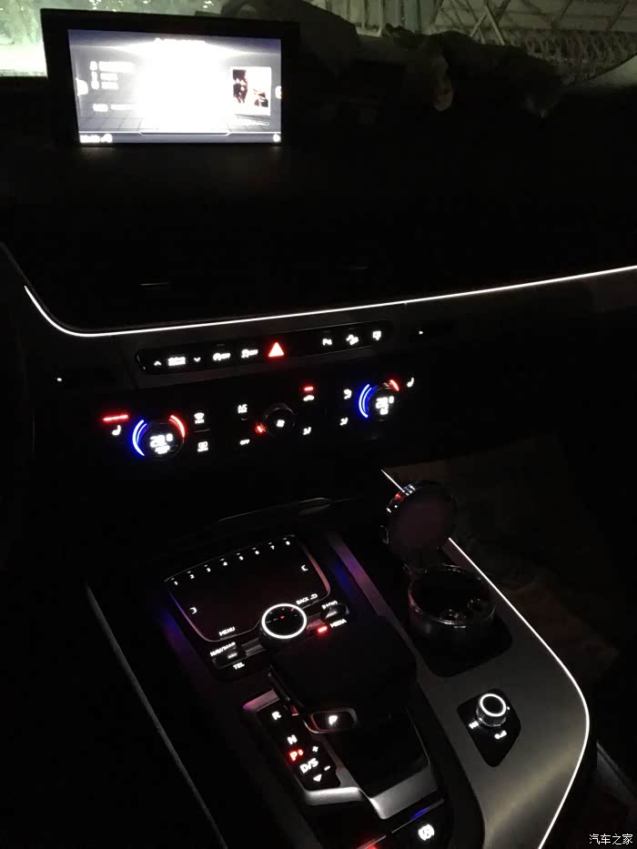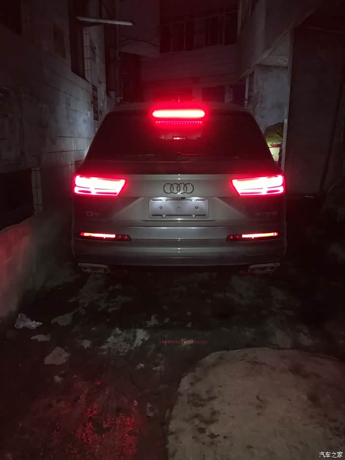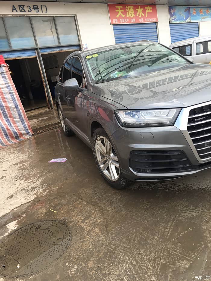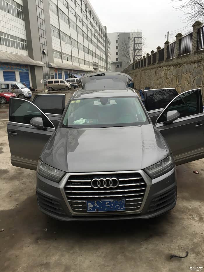 记得当时准备买陆虎揽运的,到了4s店看到现车多霸气,以前总是在图片上幻想,但是到后来价格超出预想了,也就没买成,本来第二天是想直接去提极光的,但是想想陆虎变速箱的问题总是矛盾,后来陆虎旁边有家奥迪4s店,到门口爸爸说去奥迪看看多选选,当时我也就答应了,到门口刚好遇到销售出来抽烟也就接待我们了,开始在楼下看车,所有车都坐了一遍,嘻嘻挺爽的,最喜欢的还是TT.但是不是我一个人用哈哈,Q3和Q5都小了,于是准备安心去提极光了,突然销售给我们说楼上在搞新版Q7发布会,叫我们上去看看,上去看到这车,我和爸爸的第一感觉都是还不错,绕了几圈都挺满意的,当时心里想这车肯定也得100万吧,结果一问80万,还挺意外的,心里就有点想法了,就去车里看看内饰,一进去那内饰当时就傻眼,真TM有未来感,于是就和爸爸商量了一下准备交定金了,当时买的是展车,展了一天,想想也没什么,居然还要加价提车,当时头一热就交定金提车了。12月17日那天把车提了,那种心情怎么说呢,反正很激动吧,不过对于这款车来说我还是买后悔了,当时也没想这么多,看着大气,灯好看,内饰也够大,也就决定了。但是买了以后看着论坛还有这么多争议,心里总是觉得当时有点傻了。不解释下面看图吧,让你们来了解下,买的是2.0T运动版,选配了迎宾灯,隐私玻璃,加大一寸轮胎,座椅加热,后排遮阳帘。