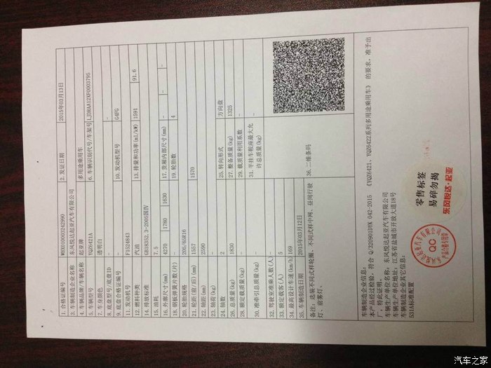 车子到手,这是钥匙和合格证,说到钥匙,我个人觉得很是郁闷,各位亲也看到啦,因为我买的是低配,车钥匙不是智能的,哎,这就是差距呀!只是苦于囊中羞涩呀