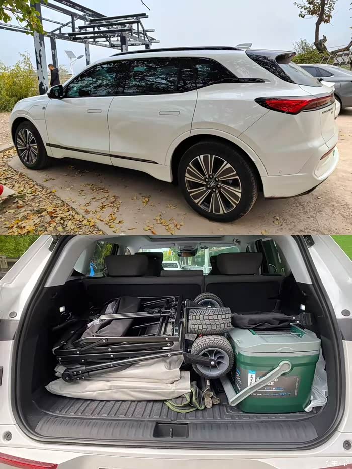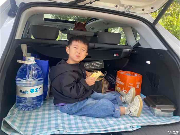 不得不说E5中大型suv不是盖的,后备箱空间很大,后排座椅放倒睡在后面真的特别宽敞,平时露营一下还是可以的。另外就是空间大带一些露营装备真的不费劲完全可以装得下。
