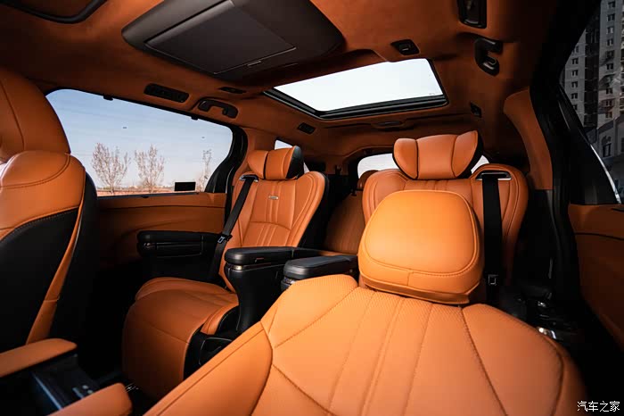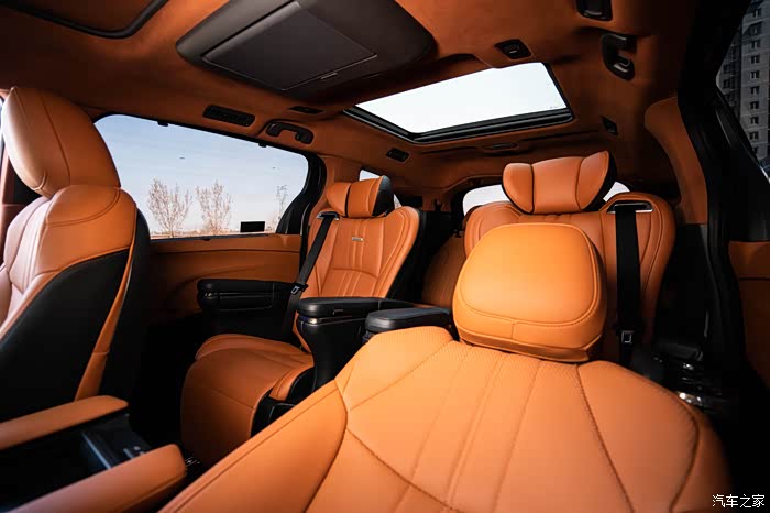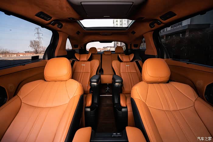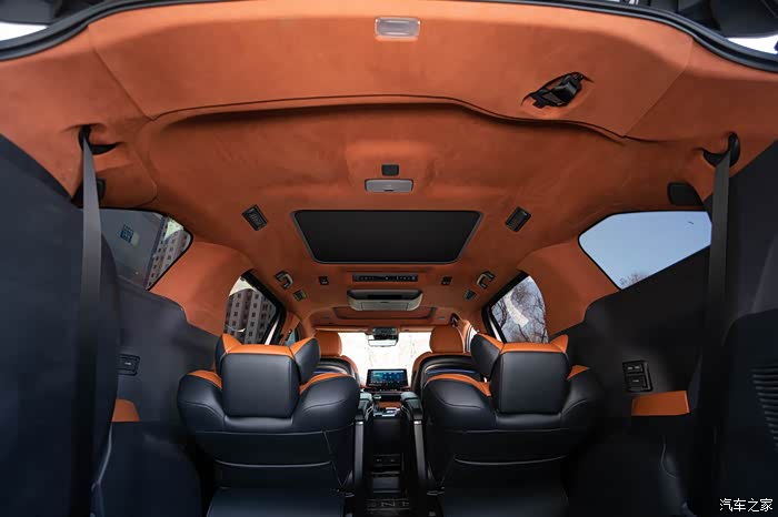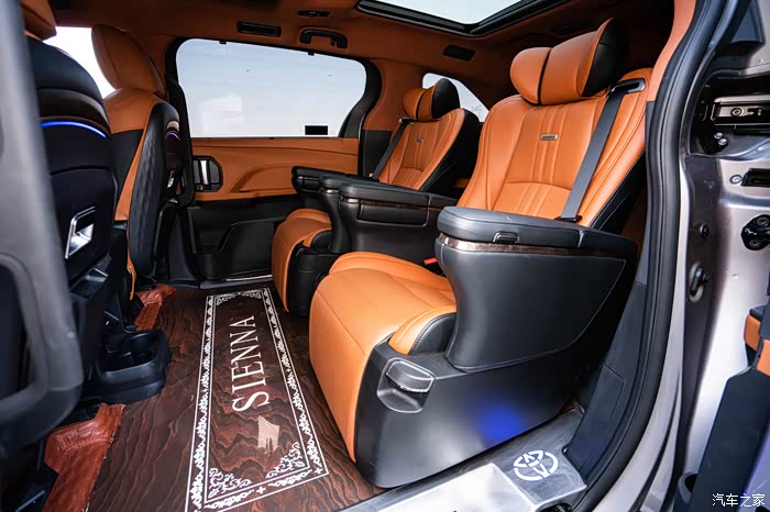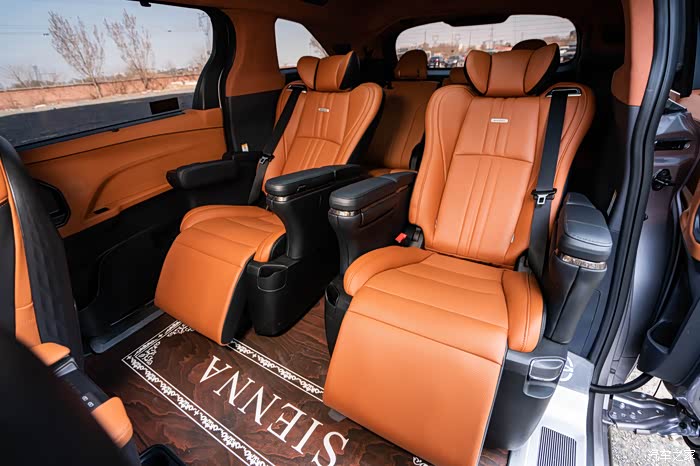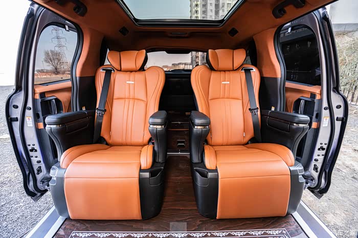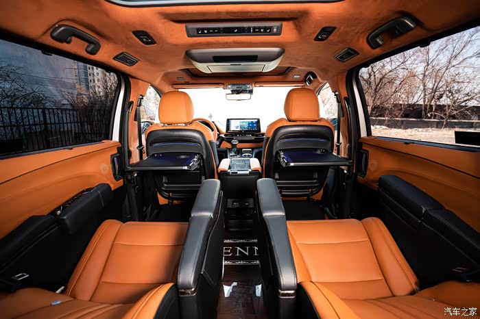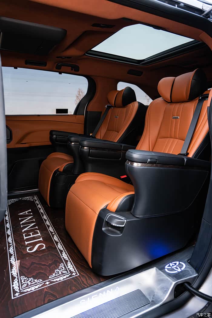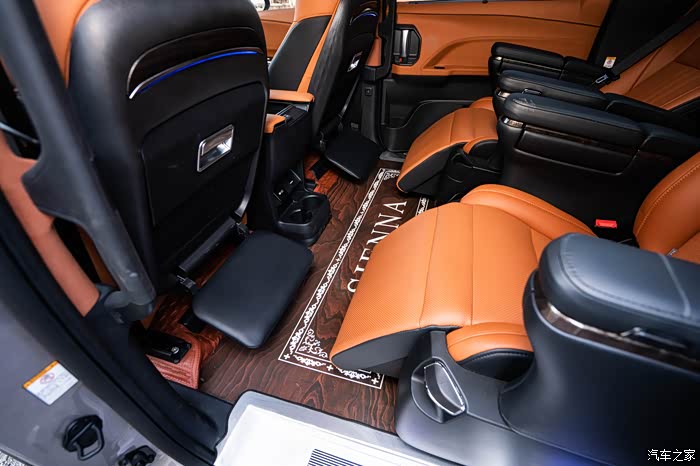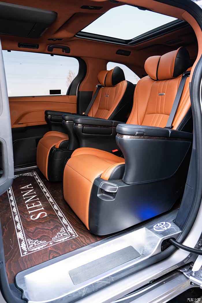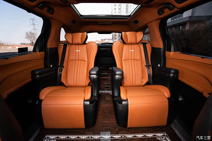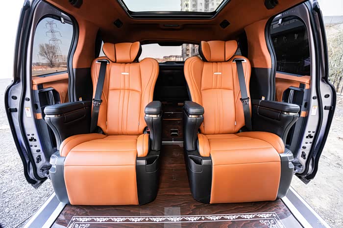 首先内饰全部做了软包包覆,包括中控台,四门门板和侧后板都做了半包,棕黑双拼的内饰风格,太鲜艳的颜色咱受不了,棕黑典雅大气一些,然后顶棚也做了麂皮绒的包覆,加上大叶棕的镜面印花地板,车内除了玻璃之外算是360度全部包覆了。除此之外我最满意的是第二排加装了阿尔法航空座椅,之前的原装中排妥妥的大面包座椅既视感,改了阿尔法航空座椅无论是视觉上还是乘坐上,家用乘坐舒适性直接天花板级别了,而且改了之后中间过道还很宽,不影响进后排的空间舒适性。除了这几个大工程,也加装了一些实用性的配置,比如小桌板、脚踏、LED迎宾踏板、隐藏式轨道、方向盘包覆等等,总之这一切都是为了让家人乘坐舒适些吧。