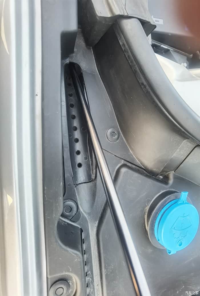 XC60的这两个位置本来是空的,很容易掉落树叶类的杂物造成堵塞,这两个小配件一装,起了大作用,有效隔绝了杂物的掉落,但是其实还是要定期清理,不然时间久了也会堵住排水孔。