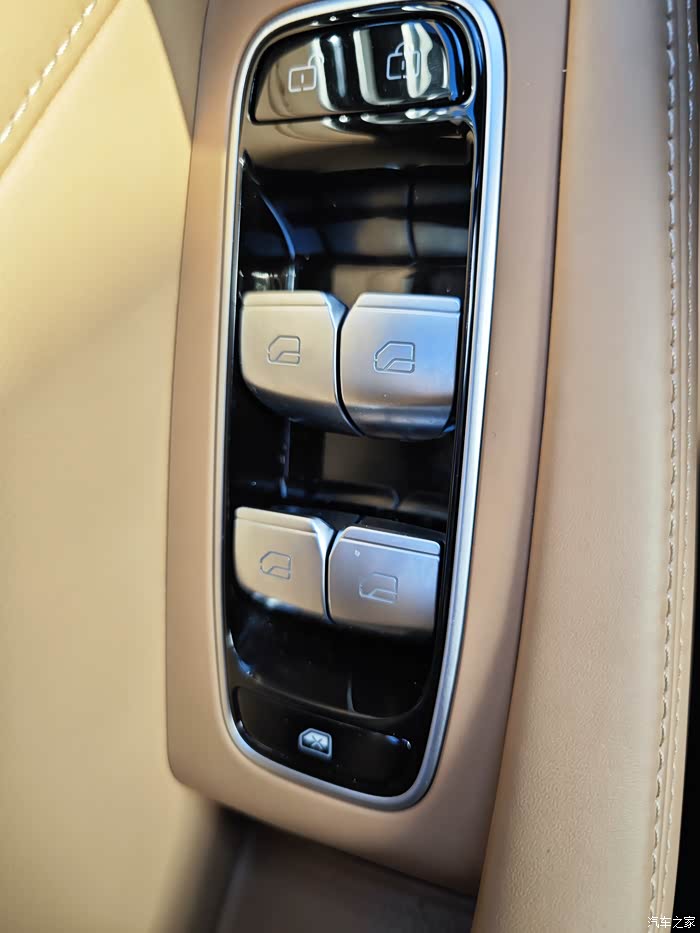 第一次开飞凡R7,竟然不知道怎么从车内开门,需要按车门扶手上的开门键。这个设计感觉是为了设计而设计,仅比传统机械开门多了点仪式感。左右两个前车门储物格里有应急开门拉手,后排车门没有,如果按键失灵,后排乘客无法从车内开门,具有一定的安全隐患。