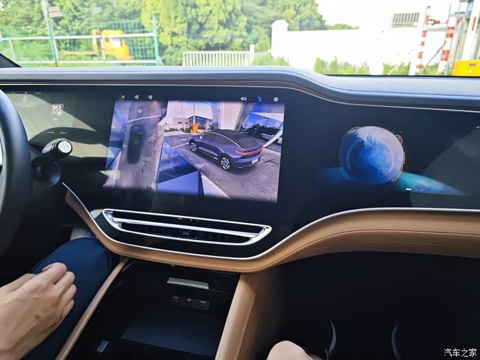 到了内饰部分,飞凡R7共计有5块屏,左侧液晶仪表10.25英寸,中控屏15.05英寸,右侧副驾驶屏12.3英寸,扶手箱有一块小屏,同时还搭载了抬头显示系统。抬头显示系统为70英寸,非常大,可以显示车速、导航提示等众多信息,其中导航提示有动态箭头指引,还算比较好用。不过,抬头显示系统清晰度不高,有点虚,应该和尺寸过大有关。