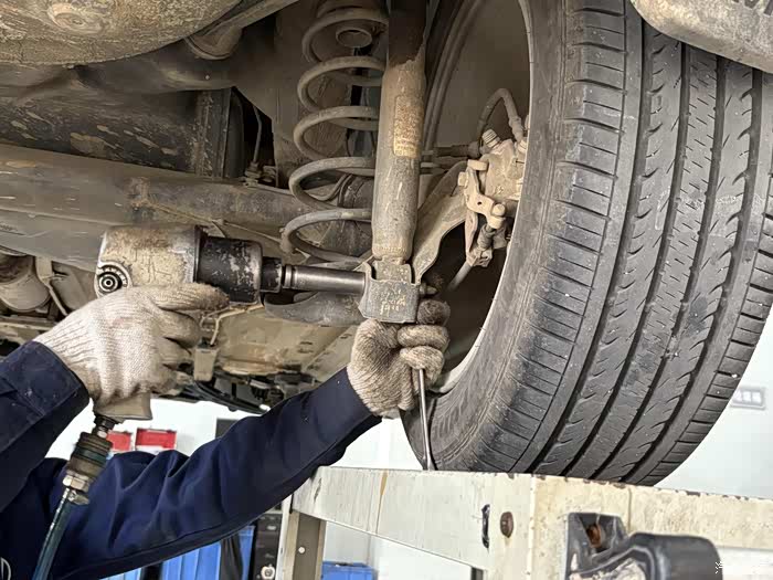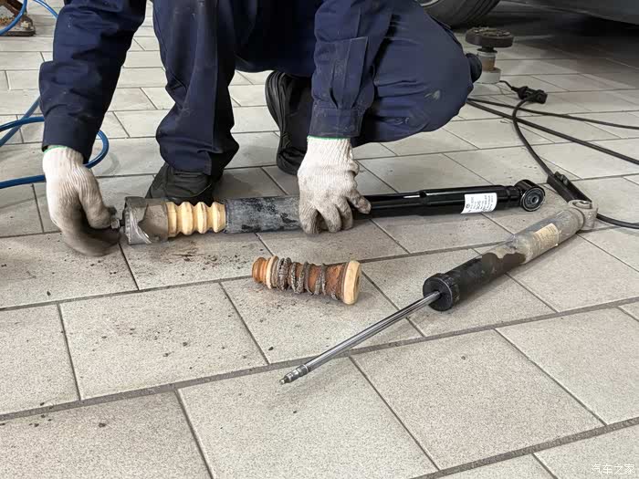 右后减震器已漏油,防尘胶套老化,所以今年有更换了右后减震器。