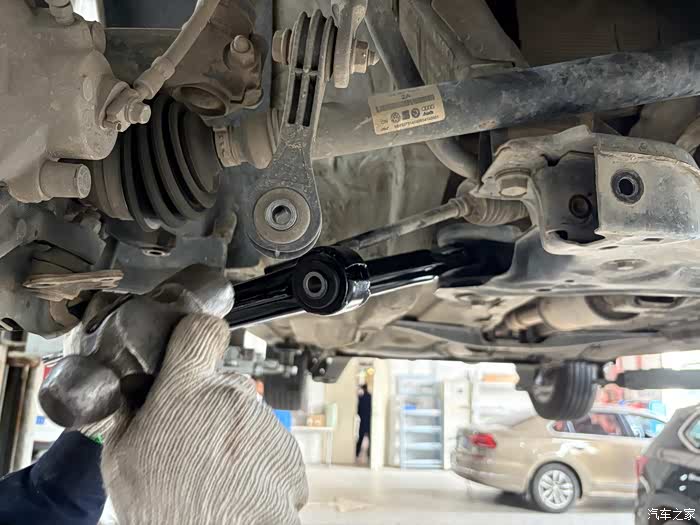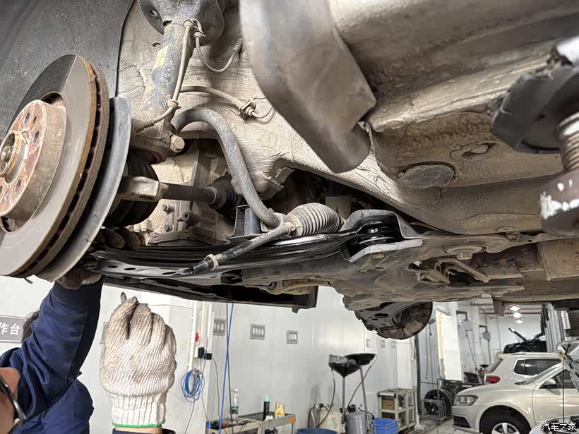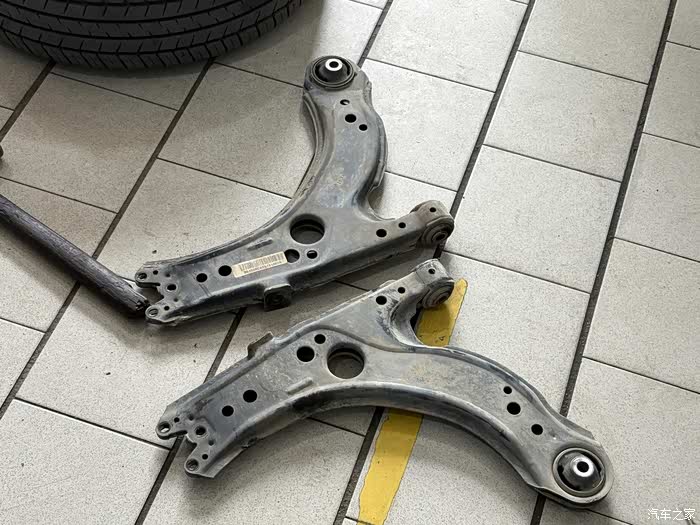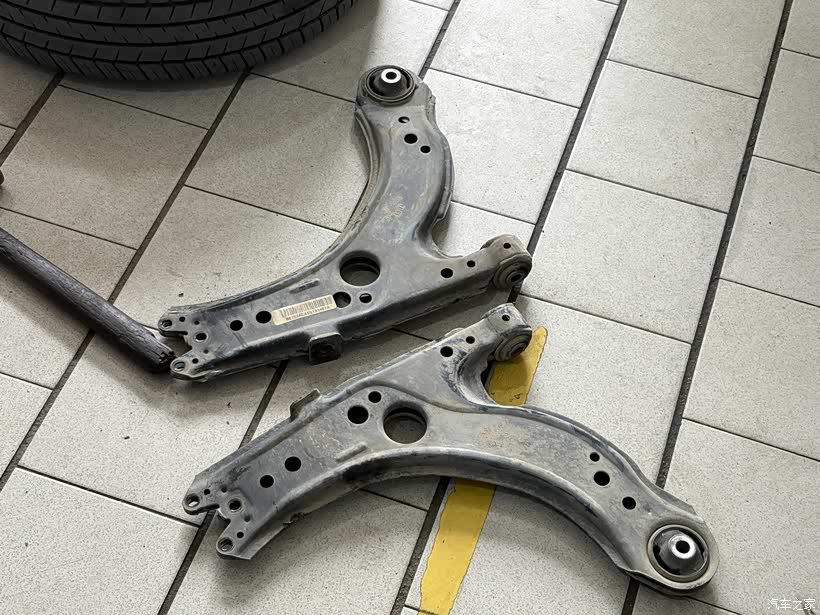 前面两个下摆臂的胶套老化开裂,其实这个还可以再坚持一两年,想着说更换转向球头一起更换,能省下一点工时和四轮定位的费用,所以索性一起更换了。