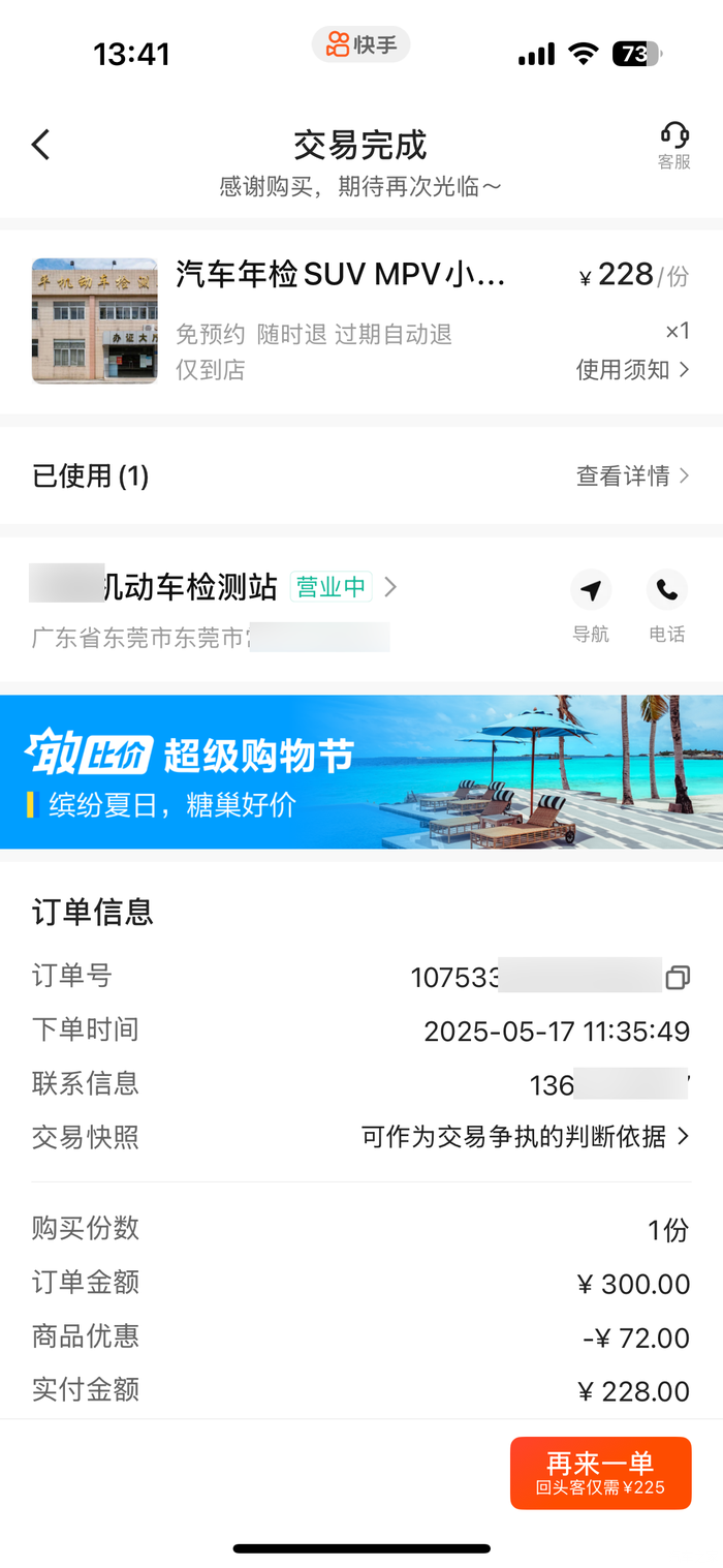 购车后第六年、第10年后开始每年都要上线年检,我们这里年检的费用是300元一次,我选择了团购,今年的年检费用是228元,比到店年检要便宜不少。