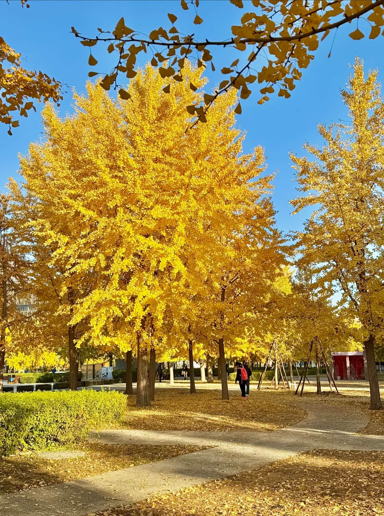 奥森的秋称为“人生秋景”的打卡地。这里的银杏,不是孤单的金黄,而是一片连着一片,一路绵延成金色的长河;这里的风,不是凛冽的寒,而是带着草木清香的柔;这里的人,不是匆匆的过客,而是愿意为一片落叶、一缕阳光驻足的赏秋人。