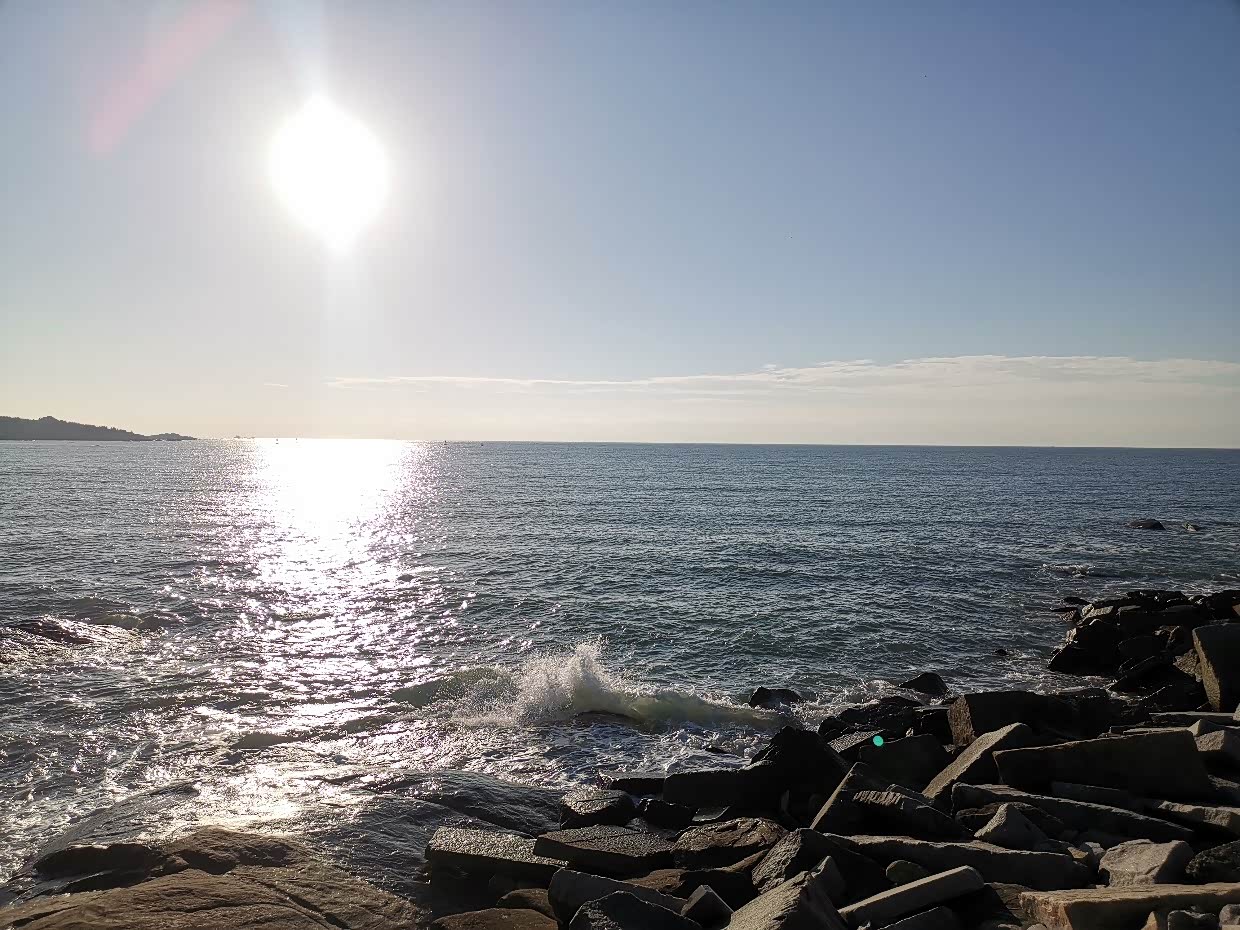前面就是一望无垠的大海,现在是涨潮的时候,看到的只有海水,沙滩的面积很小了。