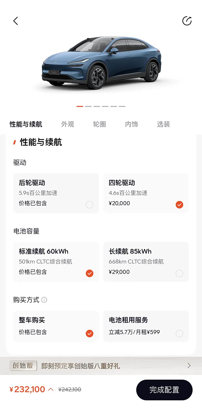 虽然首销权益没有蔚来的终身免费换电,但是还是值得一冲的。蔚来对标的是保时捷,乐道的定位起码是BBA级别,这个标就值5万,你这样再看,等于花9万9买台BBA电车,这不香吗?