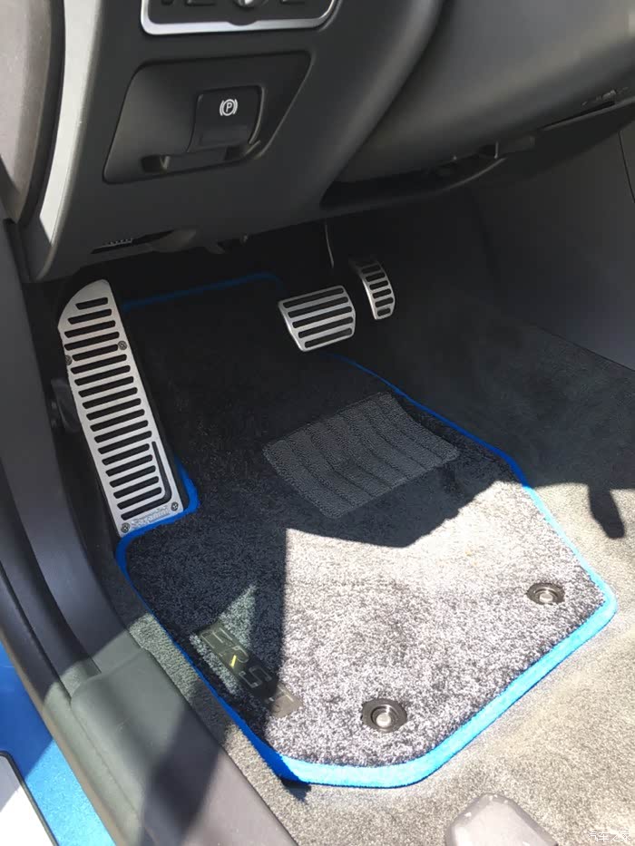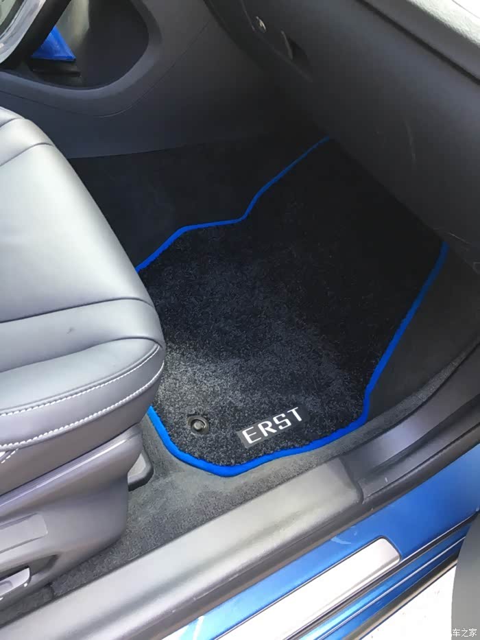 脚垫一直不喜欢那种大包围的,之前原厂的用着挺好,只是没有后排中间过道那块,后来就在某宝上买了块原厂橡胶的中间过道那块,原厂没有织物款的比较可惜,后来看到erst的脚垫,产地日本,蓝色包边,跟动力蓝真是绝配啊,哈哈,立马拿下,织物比较厚实,脚感很好,甚是满意,只是价格小贵