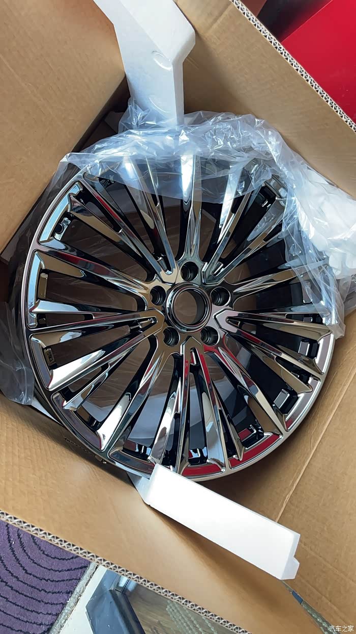 原车18寸的,总是有一种穿小鞋的不协调感,换了20寸的视觉上饱满自然协调,电镀亮晶晶的很吸睛。