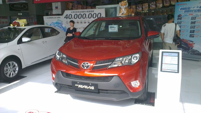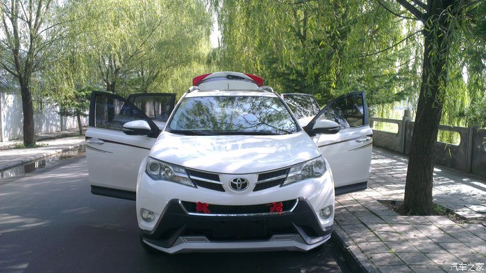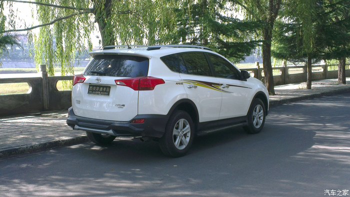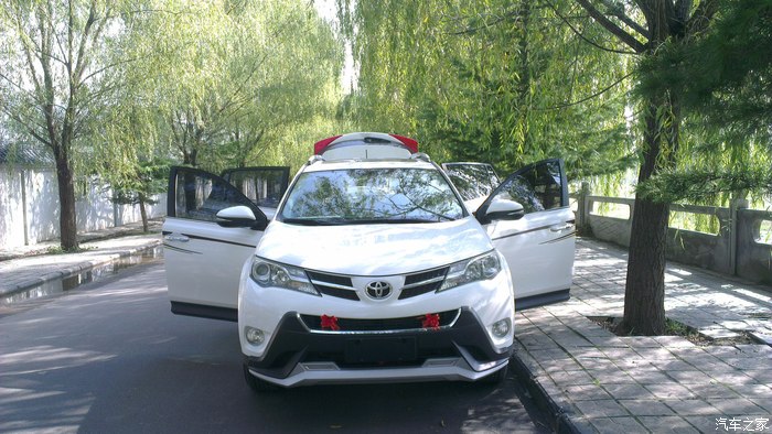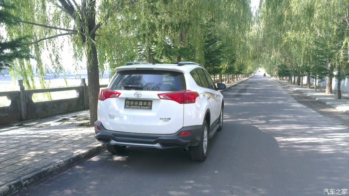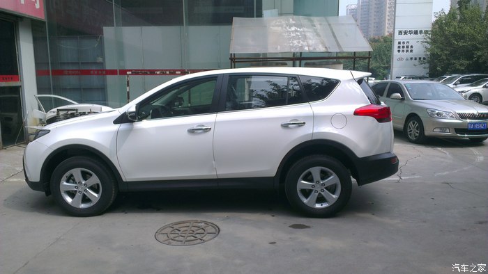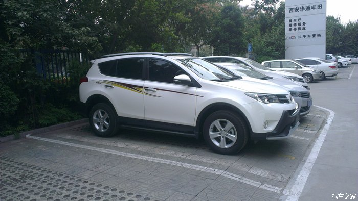 去年,公司里接的新车一辆一辆,也想早点拥有自己人生的第一辆车,但是资金还有LP一直不同意,我就一定等啊等,不断做思想工作,但购车的愿望一直没有消灭,发誓一定要提上一辆车。于是与LP多翻沟通,与家长多次交涉,终于同意提车,但是要等到2014年底。哎呀,当时一下子感觉太好了,终于同意提车了,但维一不好的就是还要等到2014年底,时间太长了。在这一年的时间里,可以说看的车太多了,起初就是家用紧凑型,但给家长说后,一票否决,因为家长开的就是11款卡罗拉,车是好车但是空间真太小,所以紧凑的直接PASS,然后就是差不多的中级车,神车价太硬问题也多PASS,看了好长时间的凯美瑞,感觉很好,空间也大,2.5G豪华很不错,最终还是没有通过家长的同意,没想到最后家长直接给出的意见竟是SUV,我都没有想过,不过有人支持了,我还害怕啥,于是就直接看SUV,于是也经历了一翻痛苦的决择,什么CRV 翼虎 等,选车的经历我就不多说了,相信多数人和我有一样的经历。最终情定小R,没想到家人及LP都情定小R,既然大家意见统一那事情就好办多了,于是就开始长久的泡坛子,也对比了好多,最终两个选择 新锐与2.5精英,在这两个问题上却出现了分歧,我很想提精英LP刚开始也同意,但家长一直2.0新锐,直到提车前一天分歧都还没有解决,不过最后LP出卖了我,提车的前几天LP却站在了家长的一边2.0新锐,我彻底败了下来,心有不甘啊,新锐就新锐吧,多方对比后选择白外黑内。09月初,终于说服家人定于十一前提车,下一步就联系4S店,对比价格,期间可以说西安一汽丰田的店统统联系了个遍,龙腾、盛世、华通、新铭洋,最后选择了华通,电话当时说现金可以优惠2.1万,相对比较低了,所以就直接华通。09月初就直接订好了西安酒店。就几天时间了,等待的心情太难受了,给领导请好假。20日终于到了,向西安出发……,20日下午到西安入住酒店,心情还是无比激动啊,提车前一晚都没睡着,但早上到4S店依然感到很精神。09月21日早上09:00左右到4S店就找到之前联系过的4S小伙,端茶倒水很是热情。因对小R早已钟情了,所以直接就开谈价格及装潢,现金2.2万,送前后杠、侧踏、行礼架 龙膜 后备箱垫 车身彩条(贴上真心漂亮) 发动机护板 。现在已经提车快半个月了,目前跑了近700公里了,就半月的用车感受与大家分享一下吧!