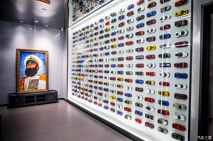 来到二楼,一出电梯就是整面的模型墙,全是1:24的车模。有路虎发现4、奔驰AMG GT、奥迪R8等经典车型,相信应该没有哪个爱车男孩抵得住这面墙的诱惑吧?