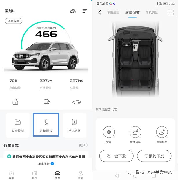 吉利汽车APP是星越L官方唯一指定APP。若各位车主使用吉利G-Netlink或GKUI发现也能登录,且能控制车辆(比如:寻车,远程解闭锁、远程启动等),在吉利G-Netlink、GKUI所能体验的功能在吉利汽车都能体验(其中远程启动在环境调节),但在吉利汽车APP中能体验到更多,如车辆分享、预约空调、电子围栏等高阶功能,故为了用户更好的体验星越L强大的车控功能,各位车主可以使用吉利汽车APP。