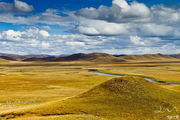 一路惊喜不断,就是没地方停车下来拍照。最漂亮的是过了若尔盖县城后的一处国家湿地公园,站在观景台上看辽阔的草原,白云朵朵,地面牛羊成群,漂亮极了。