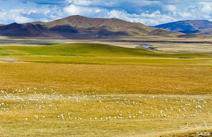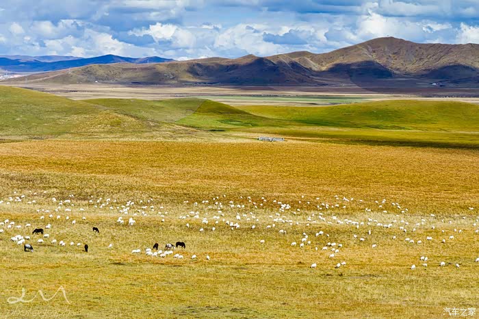 吃完酥油茶和饼出发,今天的目的地是草原。具体哪个地方好也不知道,传说中的花湖现在秋季没开花肯定没什么意思,反正往若尔盖方向开就是了。沿着河谷一路攀升,经过尕力台隧道后,上升到海拔3840高程,这时候景观出现高山草原的感觉了。