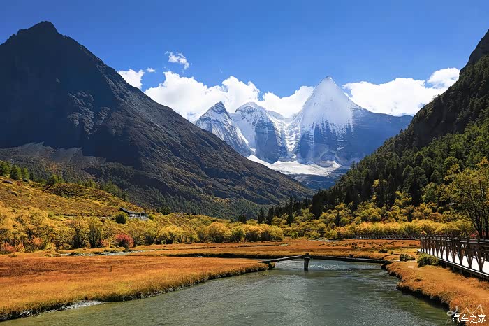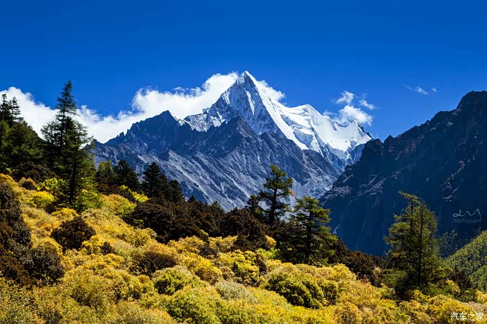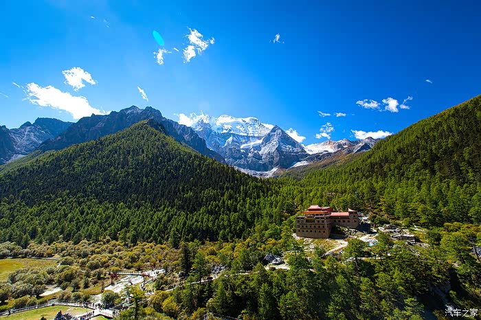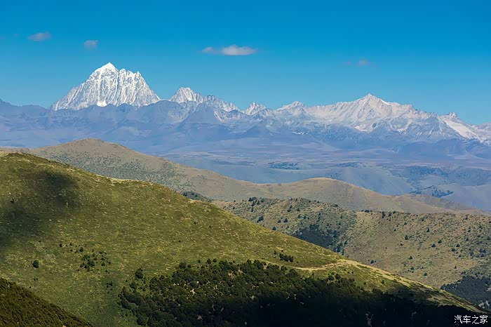 到达新都桥后去贡嘎观景台,这地方是早上漂亮,中午光线平。旅游赶路,就不要求那么多了,能看到贡嘎就很满意了。