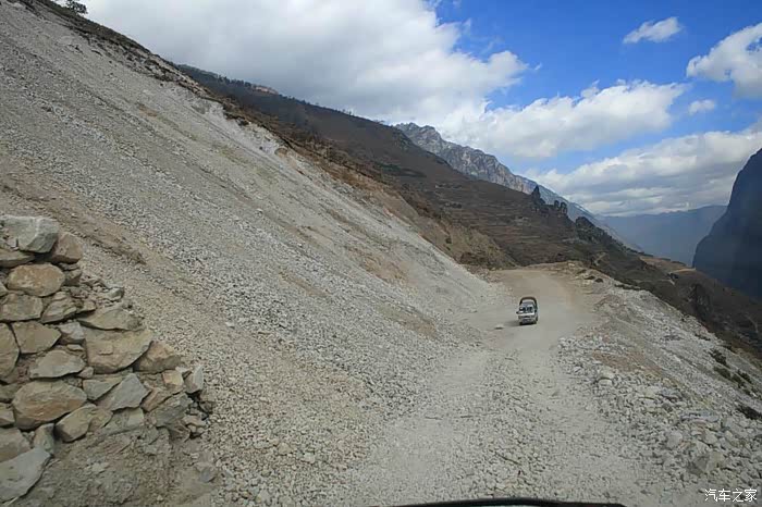 第二天走得荣到奔子栏的路,也是巨难走(对轿车来说,越野车问题不大),其中古学乡一段塌方路,我车刚过就一大阵碎石滚落,很危险。还是那句话,尽量别走这条路了,宁愿绕道巴塘、芒康、梅里雪山那条滇藏线还好走。