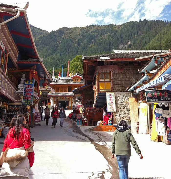稻城没有停留,再翻过4513米的波瓦山后到香格里拉镇,进去亚丁景区就要在这里购票后做旅游大巴进去。