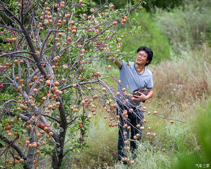 第二天吃饭主人的早餐,出发去甲居藏族,上午阴天,加上要门票50一人,就没进去。路边发现有棵苹果树,满树的苹果,打包了一袋走,酸酸甜甜,原汁原味。