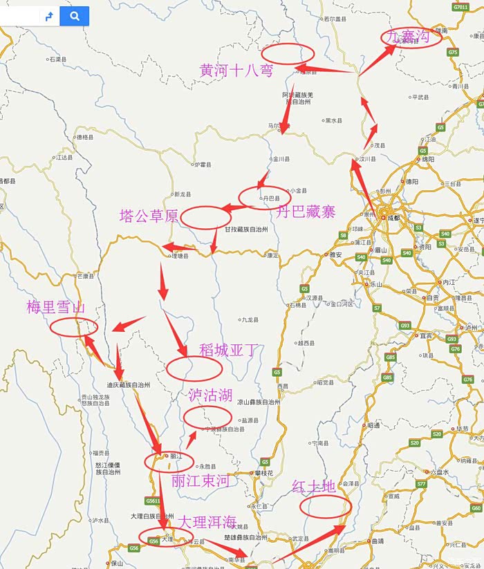 这是这些年走过的地点,很多地方去过几次。比如梅里雪山去过三次,两次看到日照金山,泸沽湖去过两次,丽江作为中转点,不记得去过多少次了,甚至公交车路线都记得很清楚。
