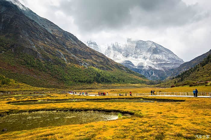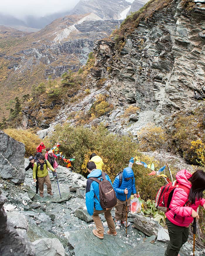 沿着栈道一步一步往上走(7公里,不过都比较平,不太耗费体力,从海拔3800到4100,一般人都能上),不过我犯了个错误,应该先做车上去,回来走路,因为到下午央迈勇就是背光了。终于见到清秀的央迈勇了!