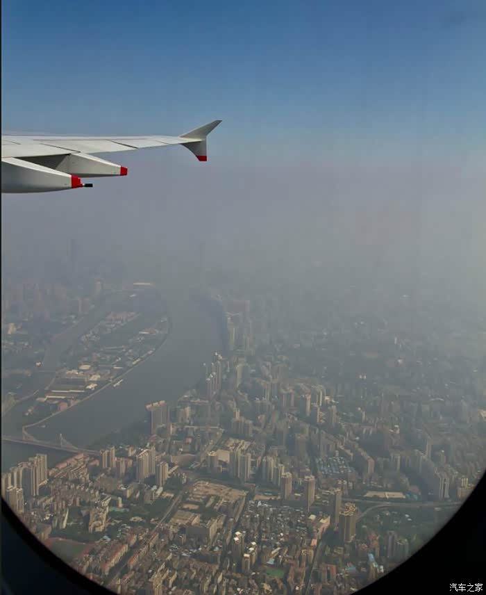 从飞机上往下看,地面附近的空气被灰尘紧紧环绕,且不说这天在地面上看是蓝天阳光明媚。