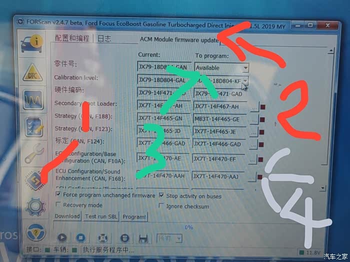 注意刷机前准:1.确保车子电瓶电压够,有条件连上充电器