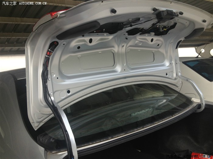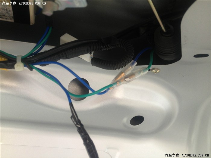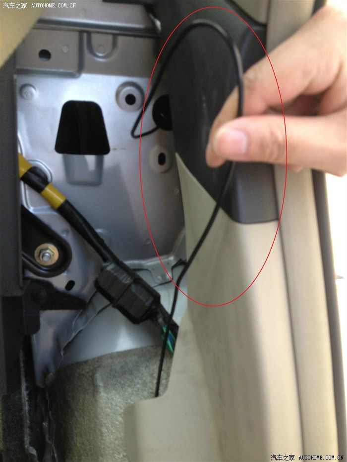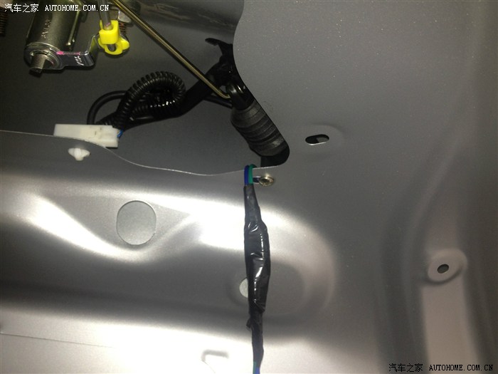 这里我们找到后备箱控制线,相当于我们自行车的刹车线,硬邦邦的。我们的开锁触发线就跟着这根线走。