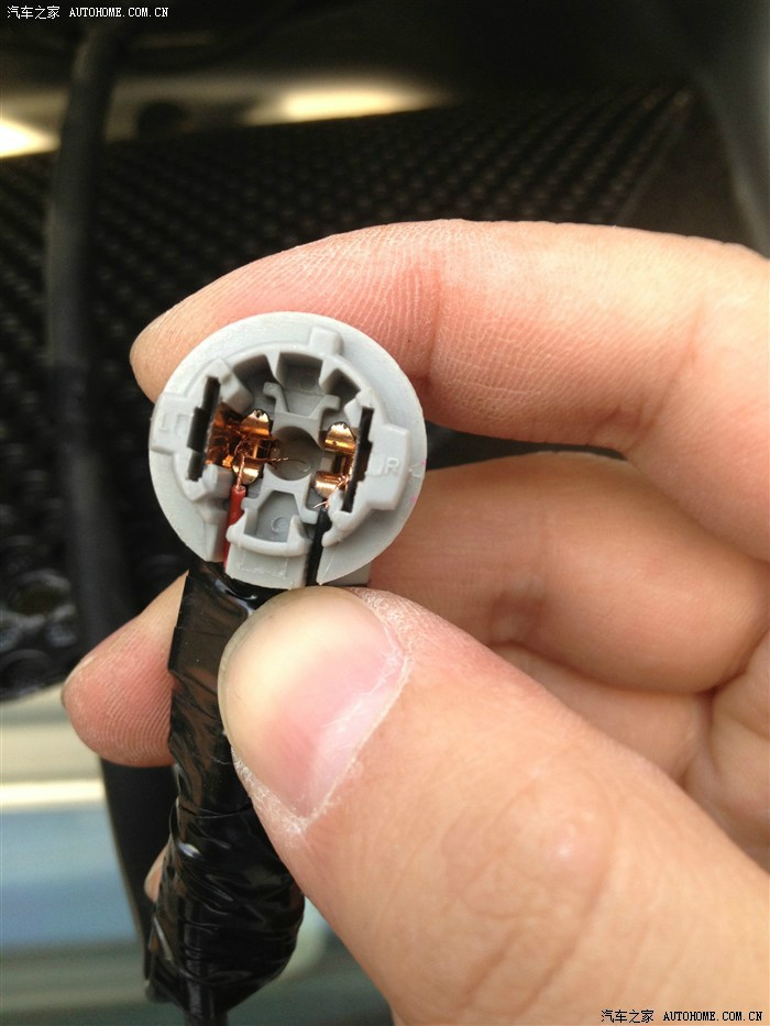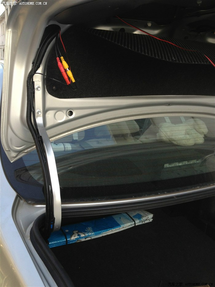 接下里控制器接负极,不建议直接搭铁,可以从牌照灯接或者上面讲到的多余的线束接,不过这里是直接从倒车灯接的(黑色负极),因为1、不需要破线,2、之前安装倒车摄像头的时候已经有线引过来了。(具体请参照我之前的帖子)