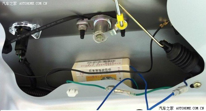 ok,像这样安装,要点就是1、调整马达角度至两个杆子尽量平行;2、调试拉杆的时候预紧一下,也就是原车的拉杆往打开方向拉点,这样就不会松驰,马达一工作就会弹开,但也不能太过,太过关尾箱会卡。