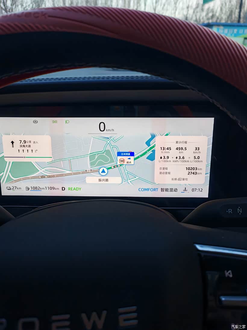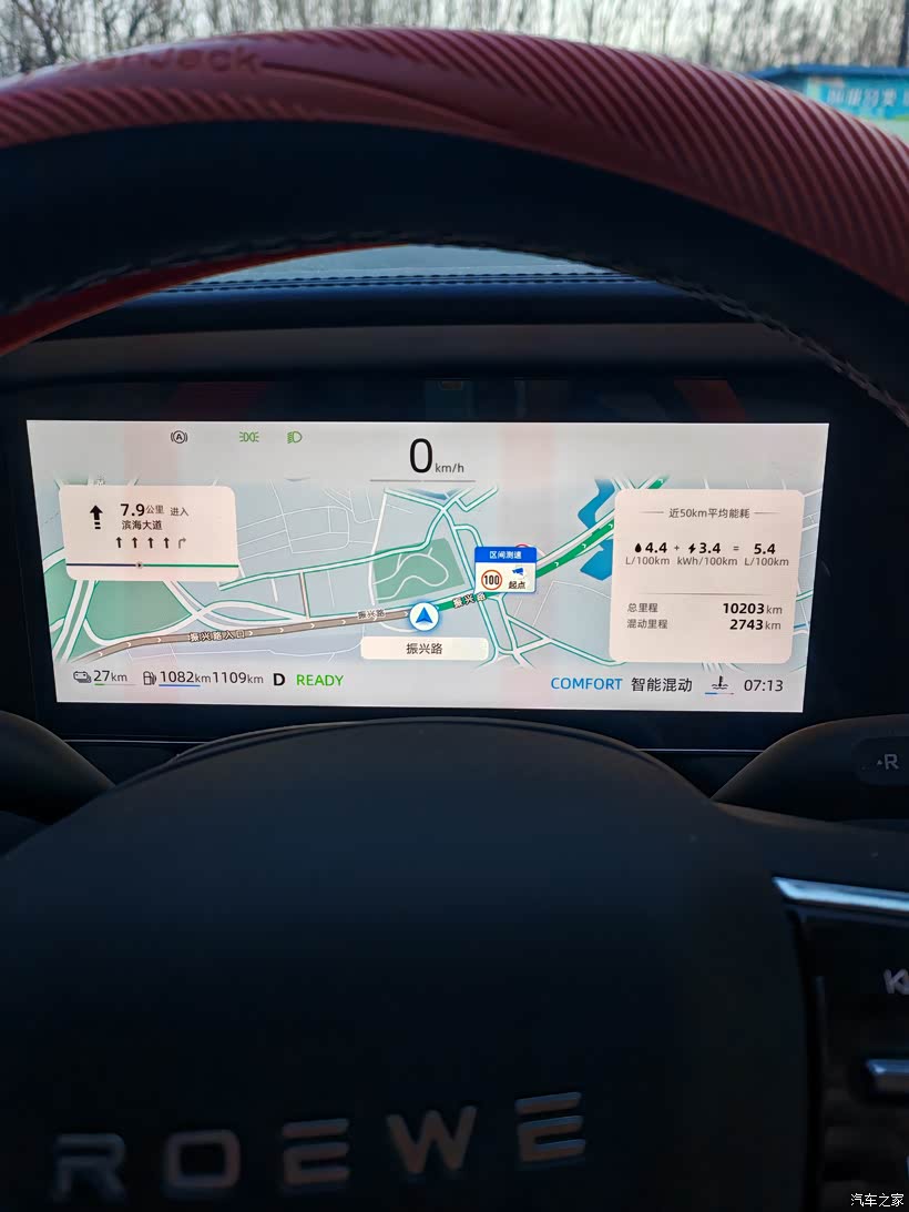 从上周一到周六,我驾驶荣威D7 DMH累计行驶了459.5公里,总里程也突破了10200公里。这几天里,我经历了从日间晴朗到夜间低温的不同天气,温度波动对能耗的影响非常明显。