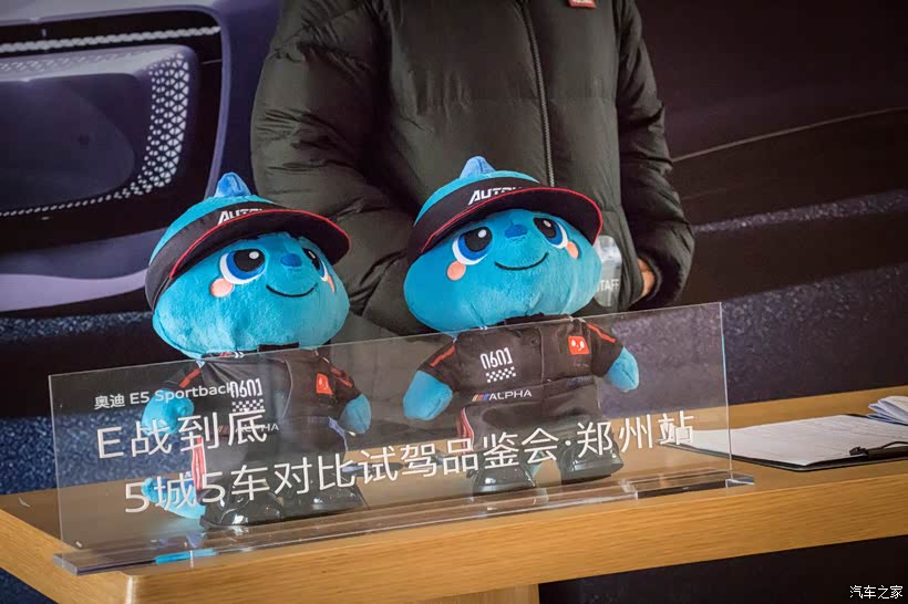 品鉴会现场,身着汽车之家赛车服的吉祥物特别吸引眼球,加上小姐姐热情引导我们签到,瞬间让现场的氛围热闹起来。视线一转,“E战到底”的标语再次进入你的眼球!