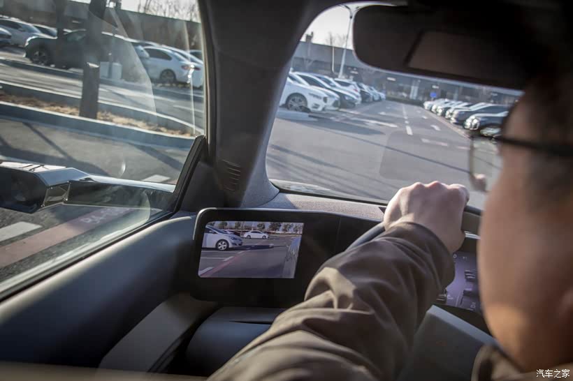 电子后视镜对应车内的显示屏,就嵌在车门内侧靠近A柱的位置,尺寸不大但显示效果超清晰。