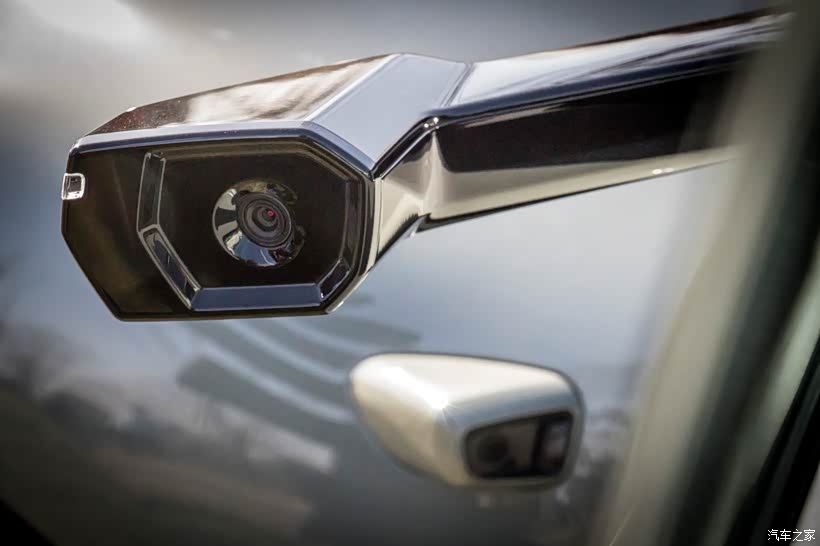电子外后视镜镜体细长、小巧精致,从侧面看,仿佛是车身线条的自然延伸,与隆起的轮眉、车身侧面的感知元件相互映衬,和谐统一。