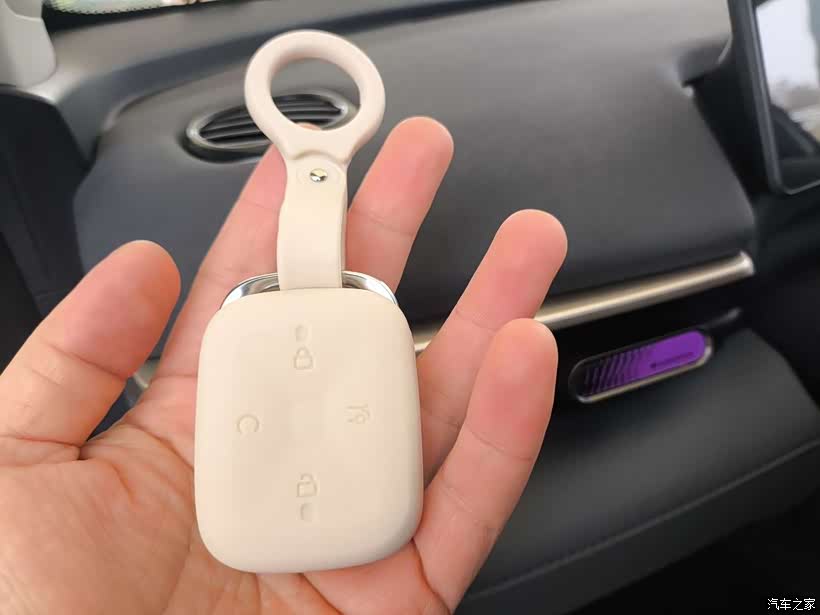 提车当天,拿到了“小狐同学见面礼”。其中有一个套盒,里面有一个车钥匙套,一个紫色的车载香薰,直接可以卡在出风口,还有车载香片,可以挂在后视镜那里。另外,就是厂家原装的环保植绒脚垫,摸着挺细腻的,踩上去舒服,关键是没什么怪味。